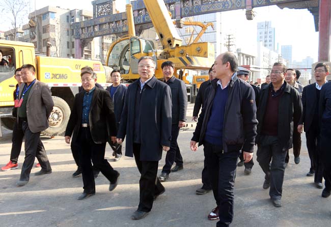 2月29日下午,东风浩荡、春日微醺,临汾市市委副书记、市长岳普煜,副市长杨治平,工程指挥长宿青平等一行领导,深入市区鼓楼南北街拓宽改造工程现场进行调研。